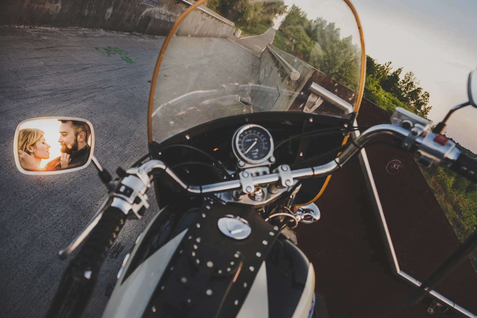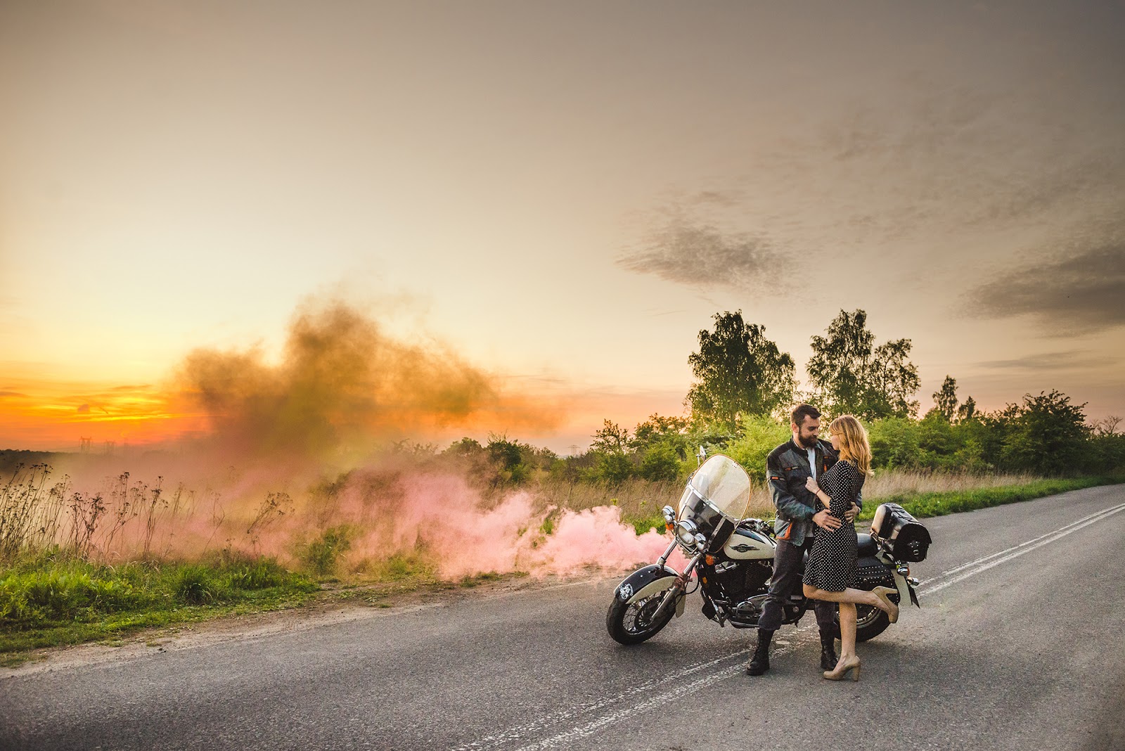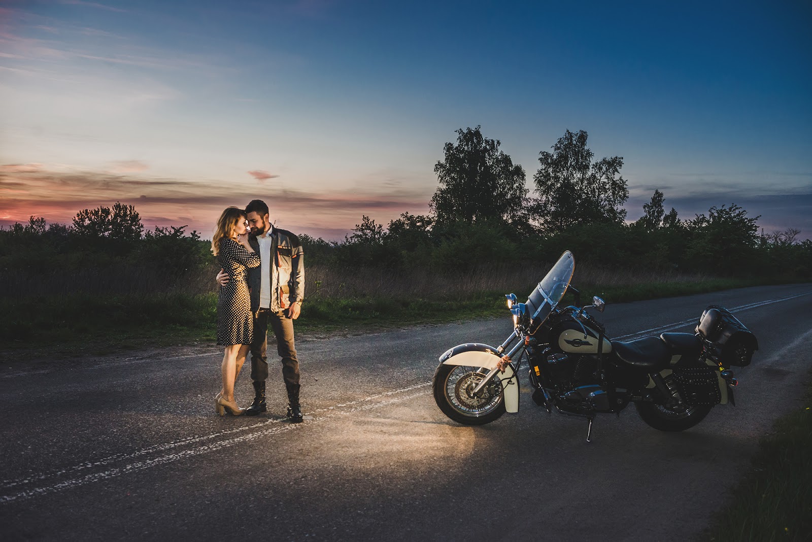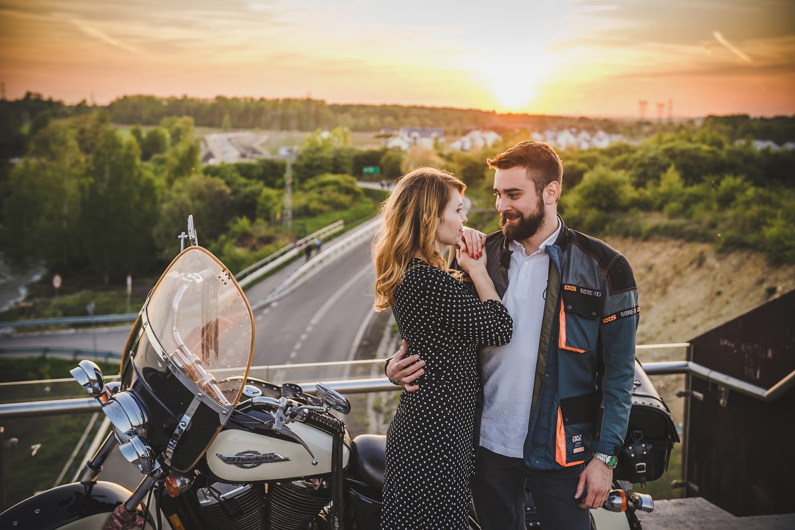 Czy już wspominałam, że uwielbiamy wykorzystywać Wasze wspólne pasje jako tematykę naszych sesji? Bartek i Kasia bardzo lubią podróżować wspólnie na motocyklu, mają za sobą nie jedną wyjątkową wyprawę. Motocykle od dawna mnie tak samo fascynowały jak i przerażały, jednak ta para odczarowała mój strach i wspólnie stworzyliśmy niesamowite kadry zarówno o zachodzie słońca jak i po zmroku. To jedna z moich ulubionych sesji narzeczeńskich, gdzie prócz emocji możecie doznać adrenalinę i ruch związaną z jazdą na motocyklu.