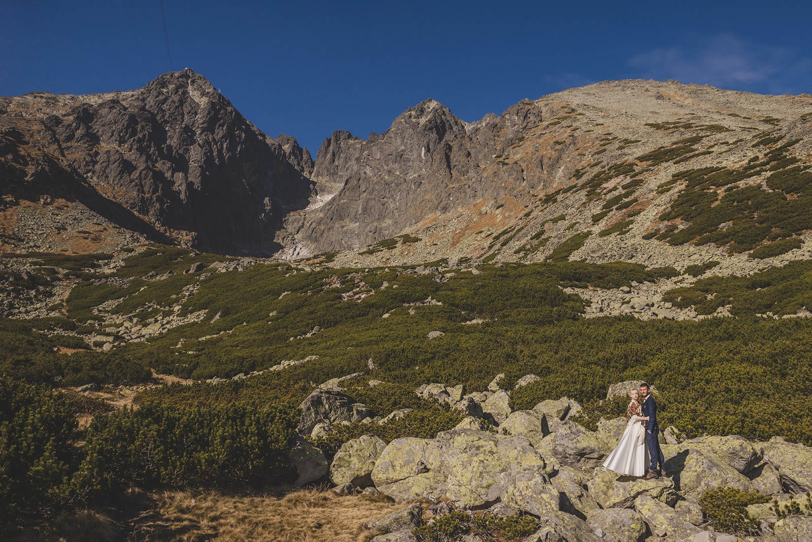 Dla takich par jak ta uwielbiamy fotografować śluby! Kasia i Michał to niesamowity duet, z którymi dzielimy swoją pasję do gór. A to było prawdziwie góralskie wesele, hej! Wszystko od A do Z idealnie zaplanowane i przygotowane w najmniejszych detalach: przepiękne i stylowe dodatki stworzone przez podhalańskich artystów, dopracowana oprawa florystyczna kościoła i sali, tradycyjne wyjście z domu, błogosławieństwo oraz cała oprawa muzyczna należała do góralskiej kapeli, klimatyczna chata na wesele i w końcu plener poślubny w Wysokich Słowackich Tatrach. Bajka! Zresztą zobaczcie sami, jak cudownie wymarzyli sobie ten dzień.