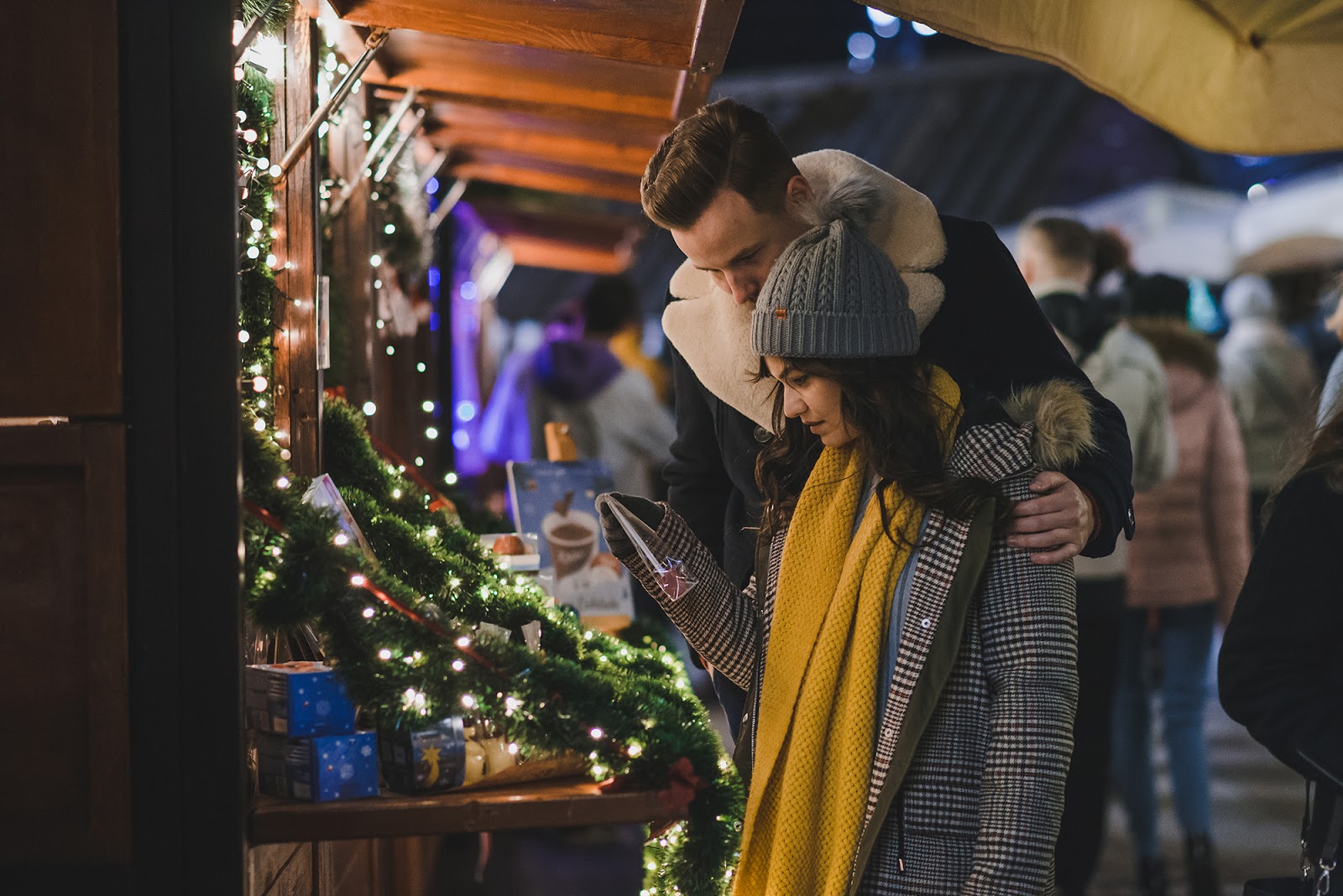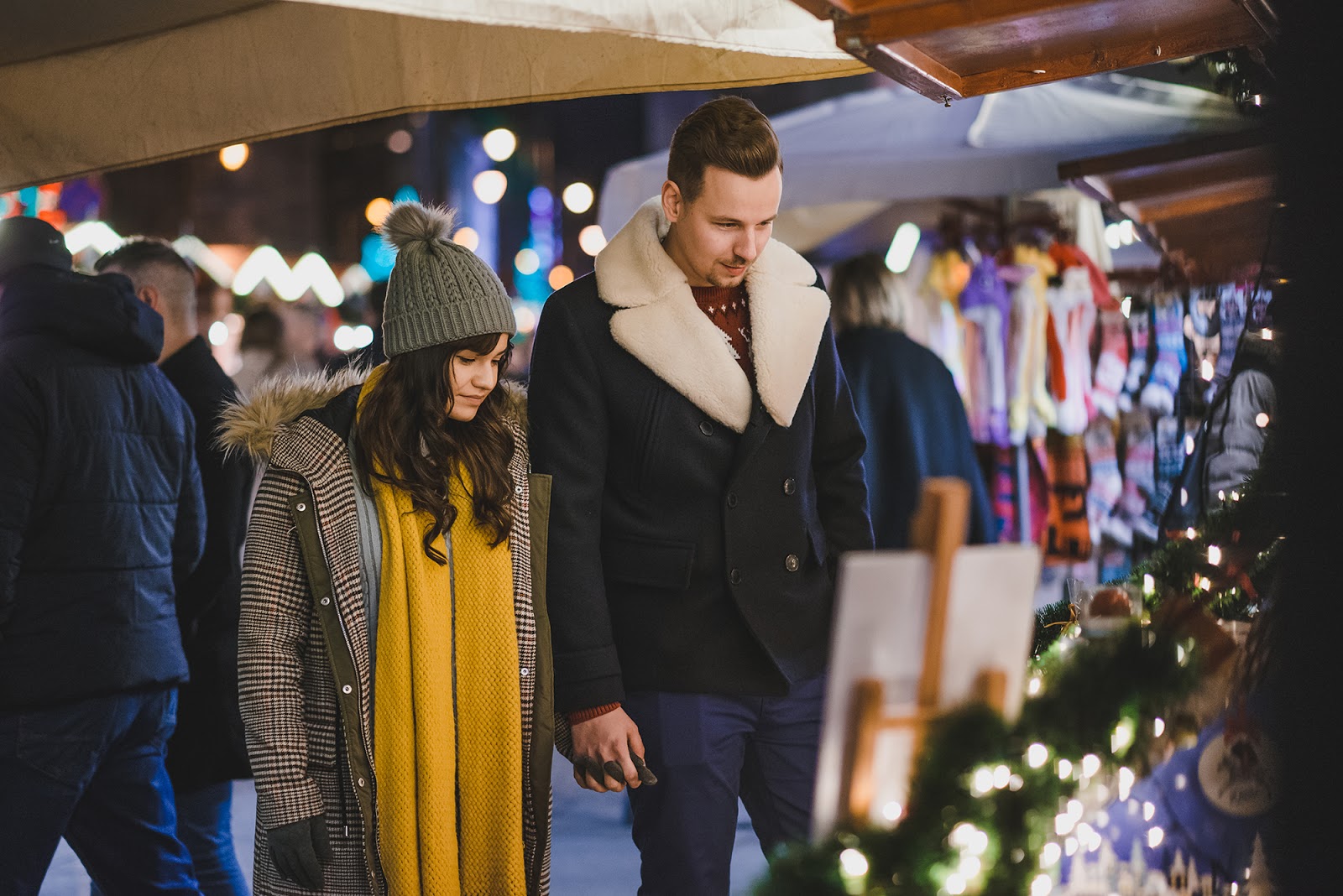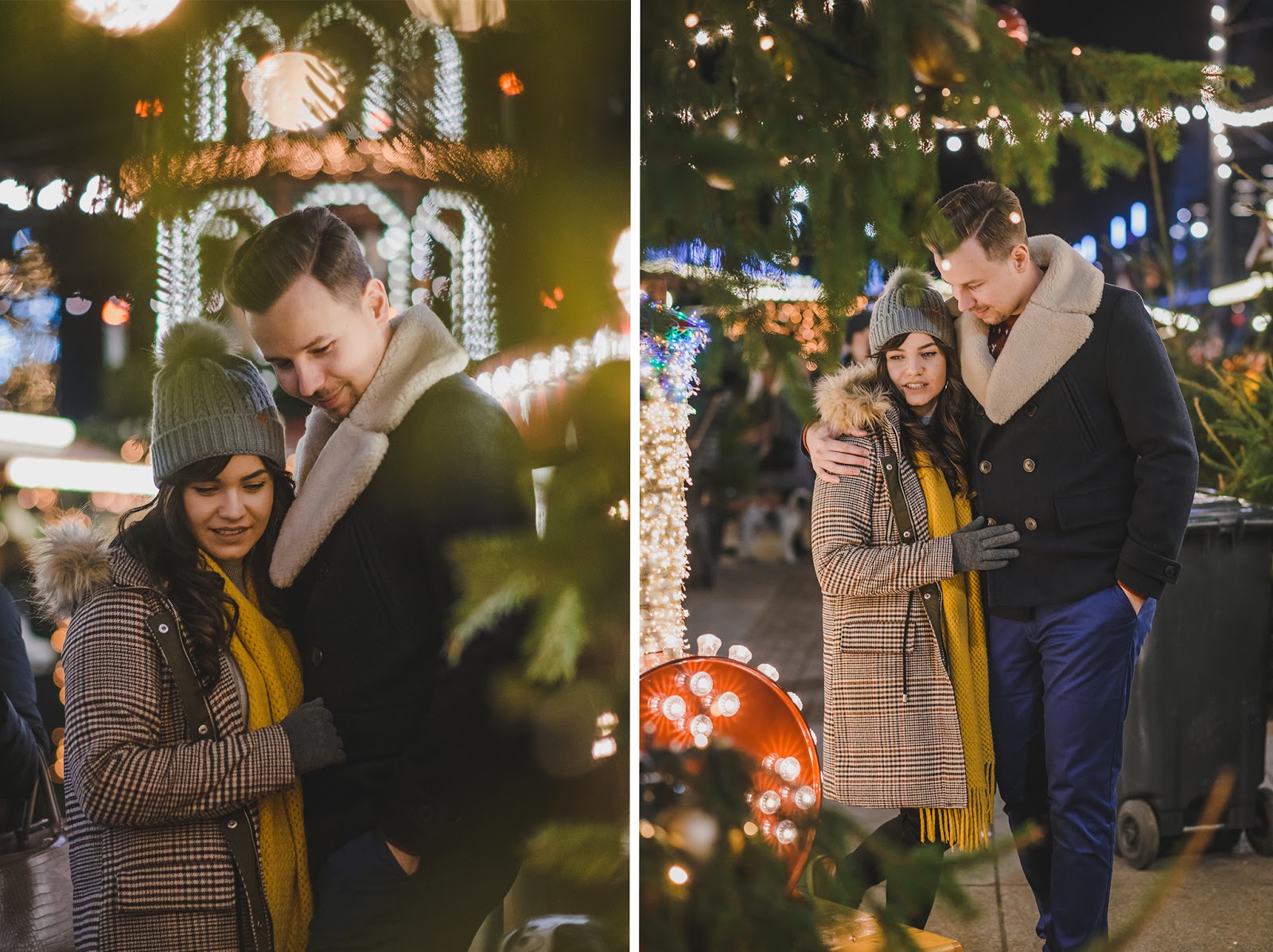 Zapraszam Was na klimatyczną sesję świąteczną na Jarmarku Bożonarodzeniowym w 2019r. Taki jarmark to niesamowicie inspirujące miejsce na sesję. Poczujcie magię świąt, celebrujcie wspólne chwilę w wyjątkowy sposób. To wspaniała pamiątka na lata. Nie obawiajcie się tłumów, które w takim miejscu są nieuniknione, mogą nieco krępować, jednak ja wolę o tym pomyśleć jak o wyzwaniu i ciekawym tle do zdjęć. Uwierzcie mi, choć jesteście w tłumie ludzi, każdy z nich zajęty jest na tyle sobą, że nikt na nikogo nie zwraca uwagi. Jarmark pomaga stworzyć świąteczną atmosferę, jednak to tylko tło dla Waszych uczuć i emocji. Jako para, spacerujecie wśród straganów, pijecie wspólnie grzane wino lub gorącą czekoladę, śmiejecie się, rozmawiacie i tulicie się by ogrzać się wzajemnie od zimowego chłodu, możecie również trochę się pobujać w rytmie kolęd Możemy stworzyć piękną świąteczną historię. Wyobraźcie sobie siebie, waszą miłość otuloną kolorowymi światełkami. Bokeh w tle portretu zawsze robi wrażenie i dodaje uroku. Mam dla Was również kilka wskazówek jak przygotować się do takiej sesji zdjęciowej, porady te przydadzą się również wtedy, gdy jarmarku nie będzie, ale będziecie chcieli wykorzystać światła miasta w wieczornej sesji zdjęciowej.