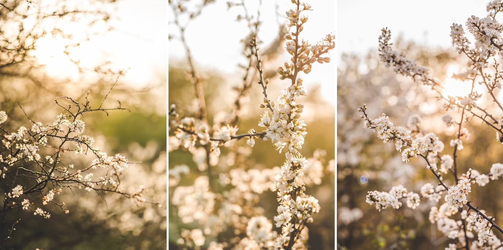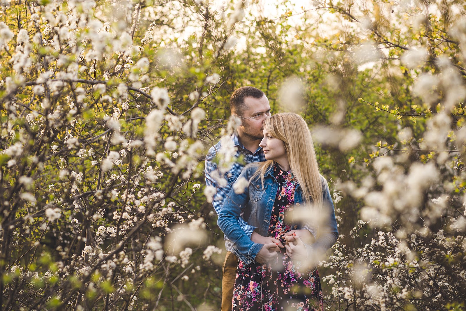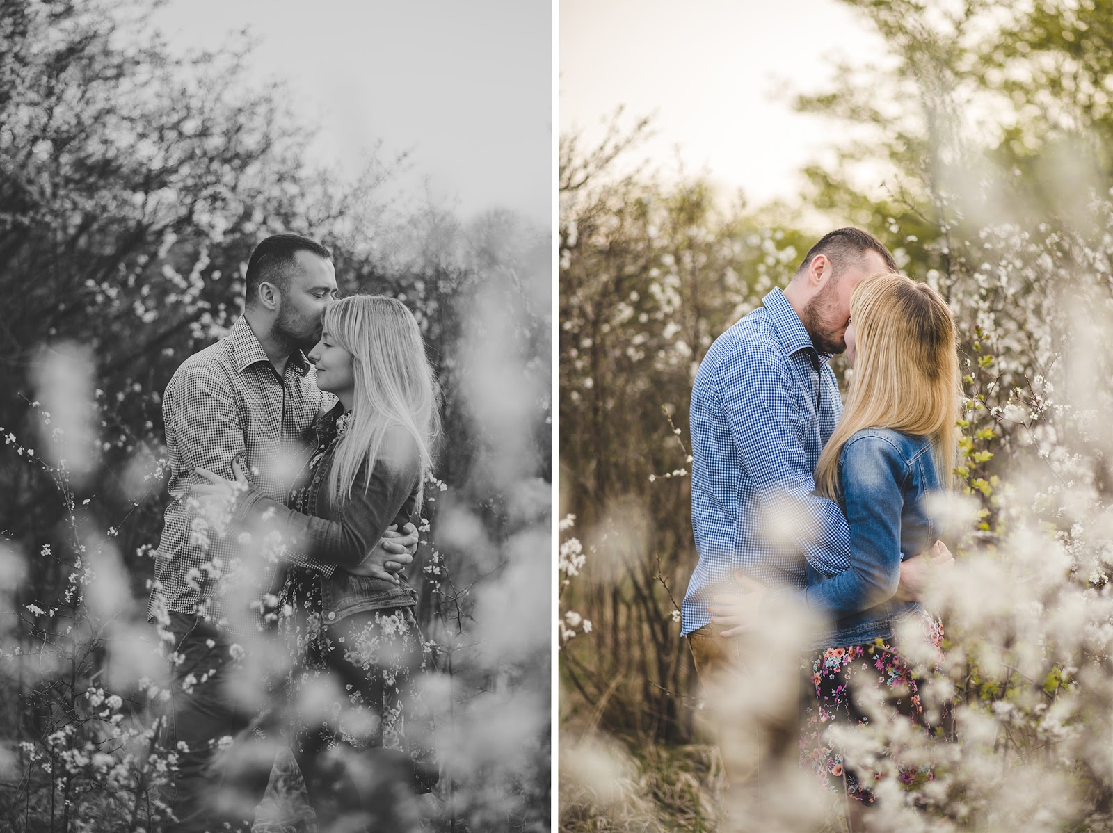A gdzie mogłabym Was w tym czasie zabrać? Właściwie wszędzie, gdzie tylko natura maluje pięknie krajobrazy,  począwszy od łąk, rozkwitających zagajników na obrzeżach miasta, gdzie cisza, spokój i tylko czuć w powietrzu wasze radości i miłość, przez budzące się do życia kolorowe parki czy sady. Niezależnie gdzie byśmy się w tym czasie wybrali wystarczy dobry humor, wygodne buty i ewentualnie koc. Na początek tych wiosennych sesji zabieram Was w pewien rozkwiecony tarniną zagajnik …